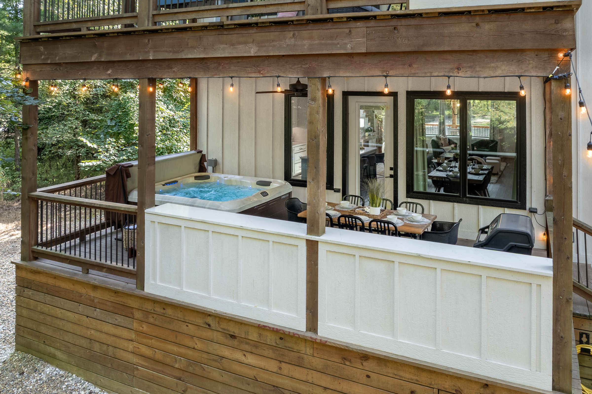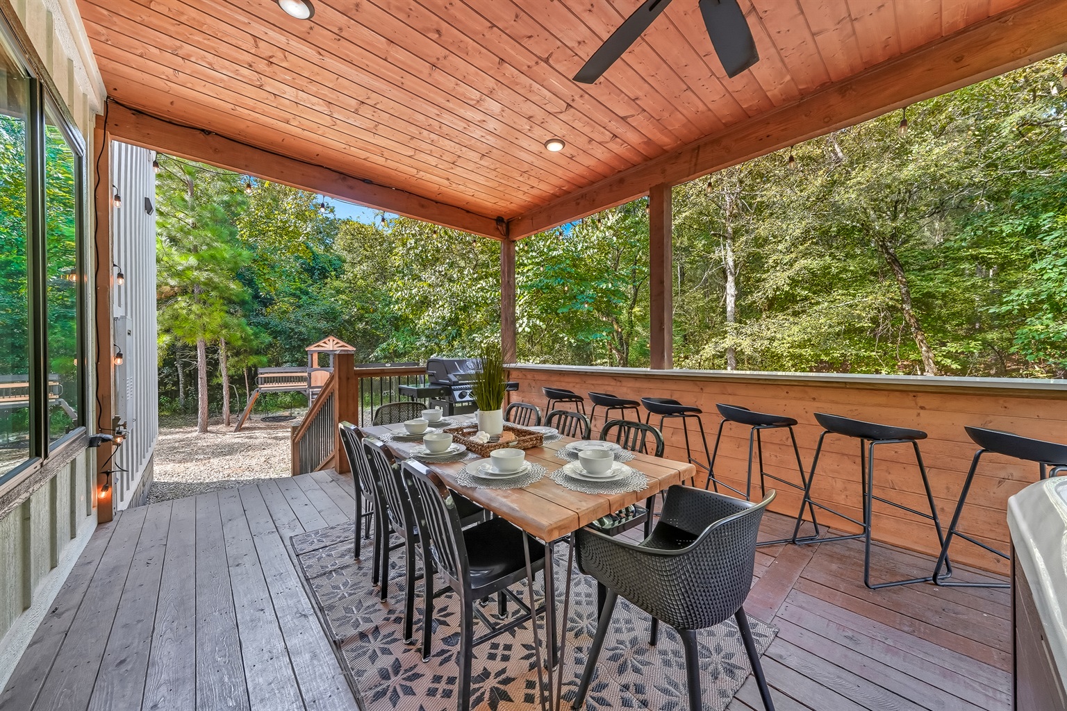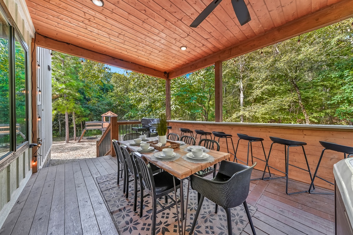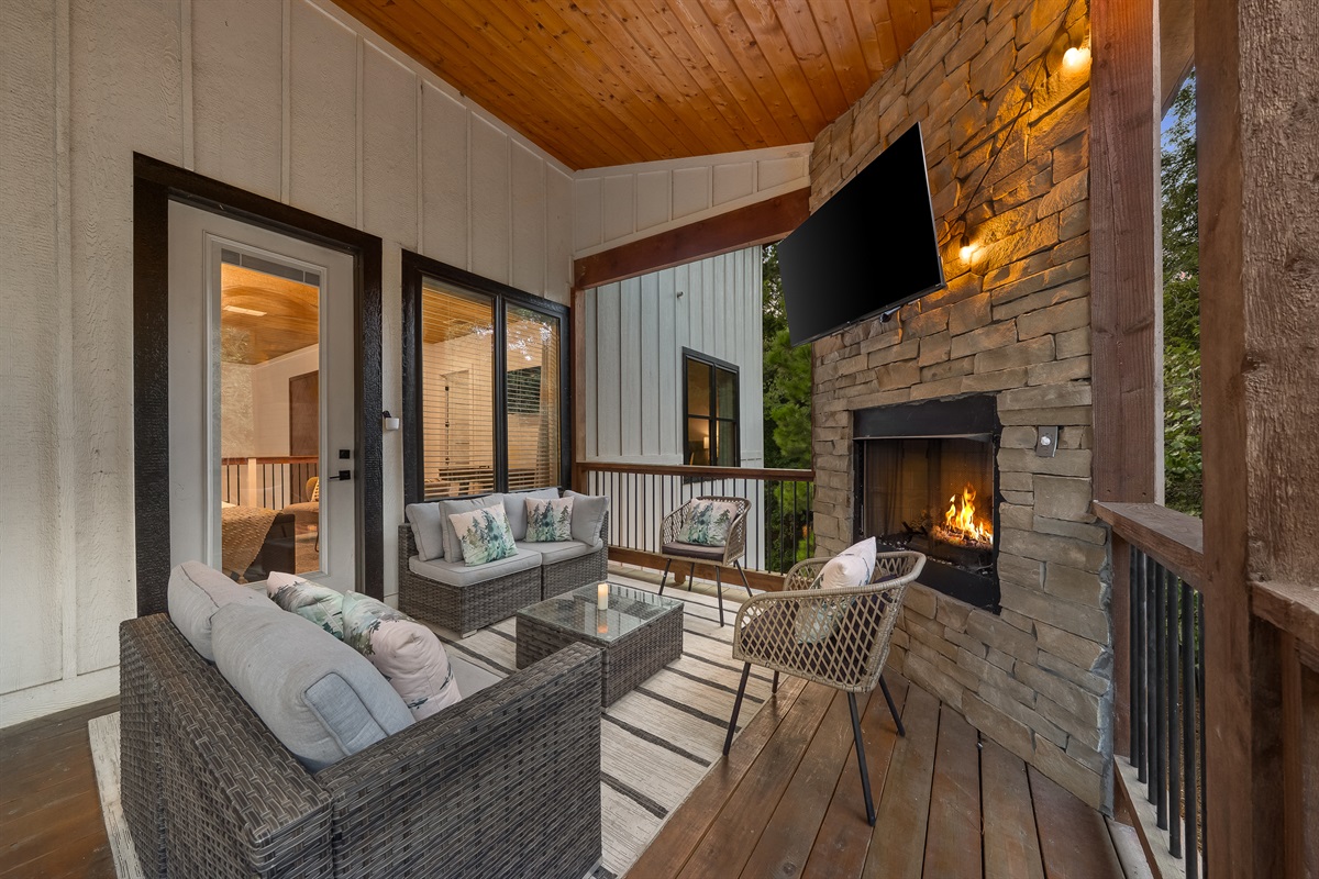 - Spacious Covered Deck with TV, Fireplace, Dining & Seating