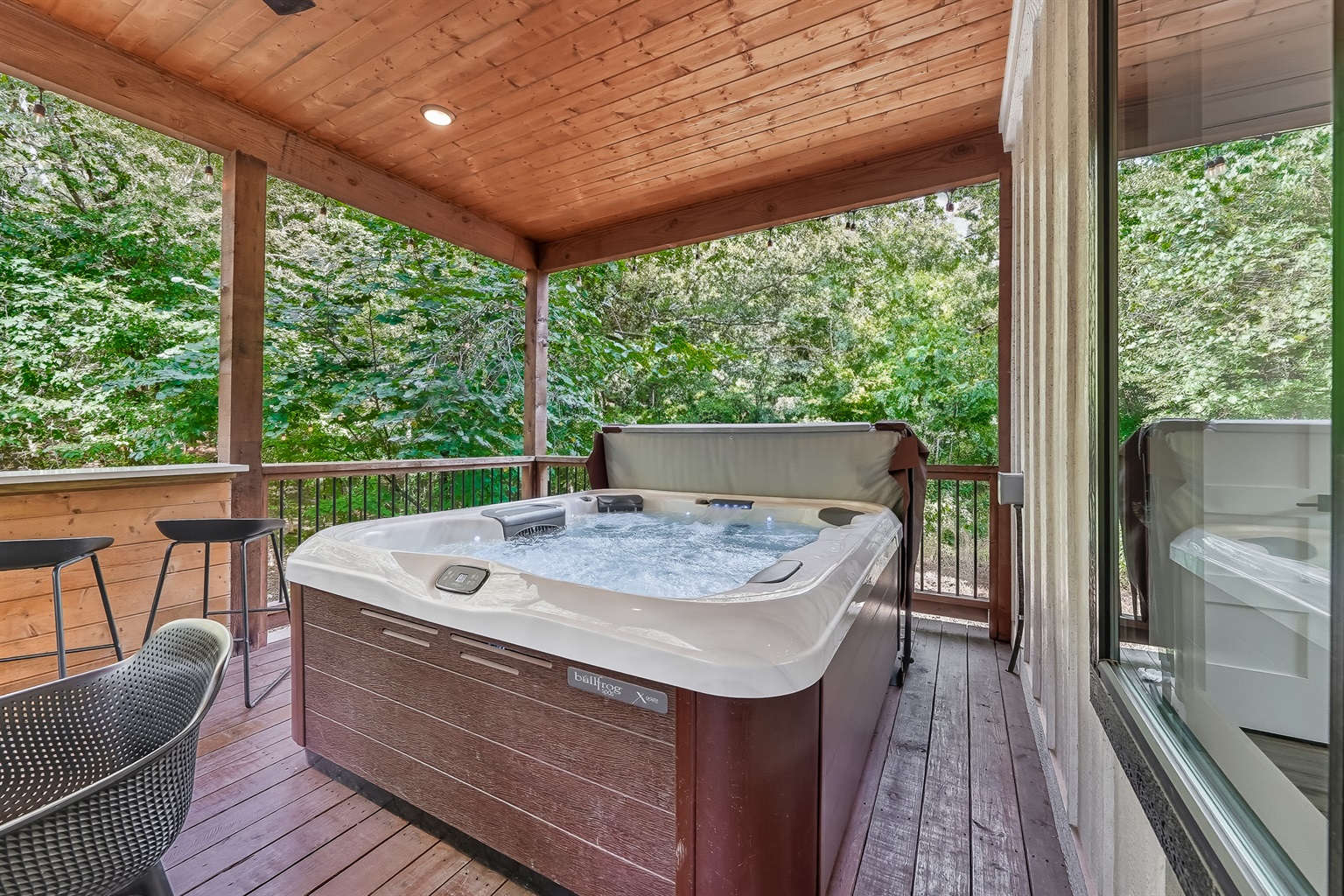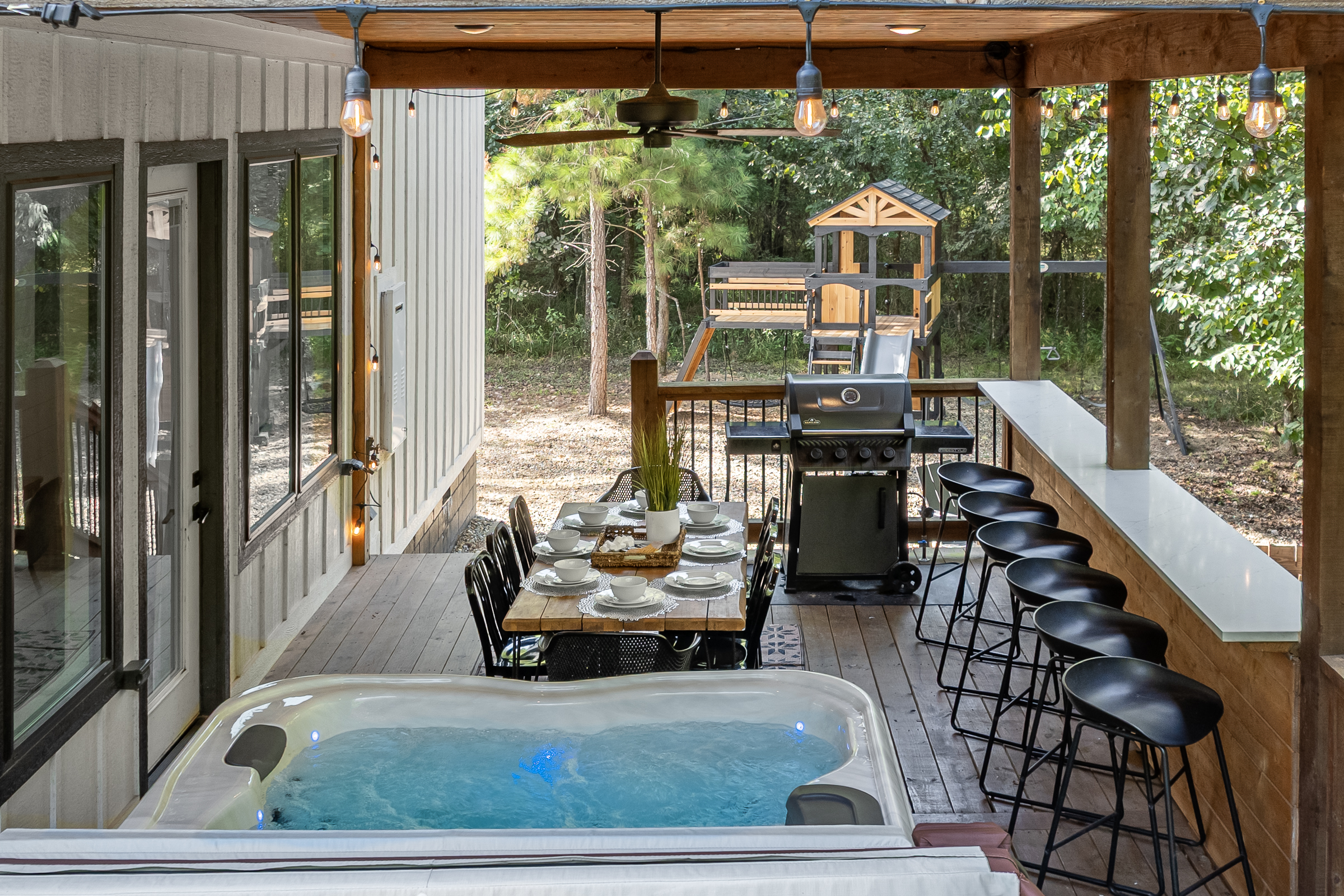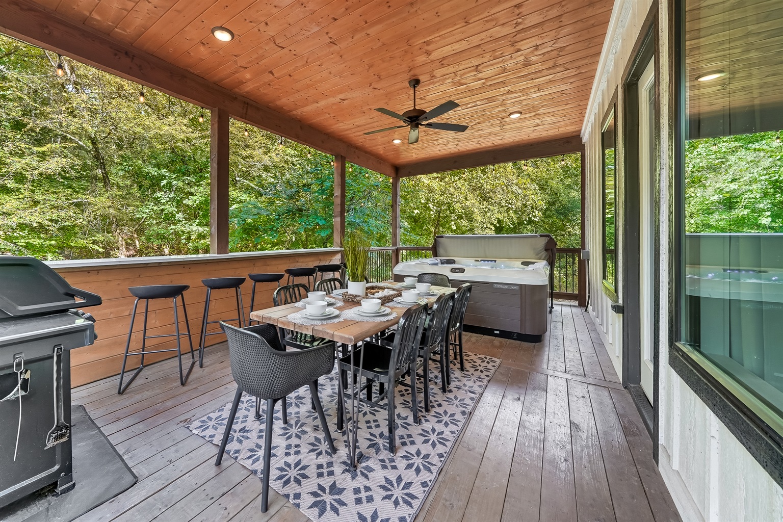 - Spacious Covered Deck with TV, Fireplace, Dining & Seating