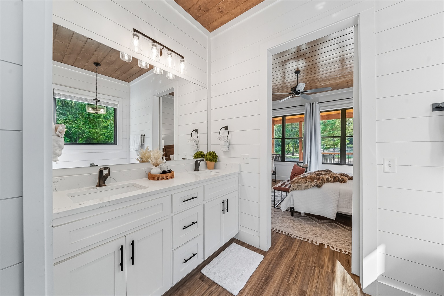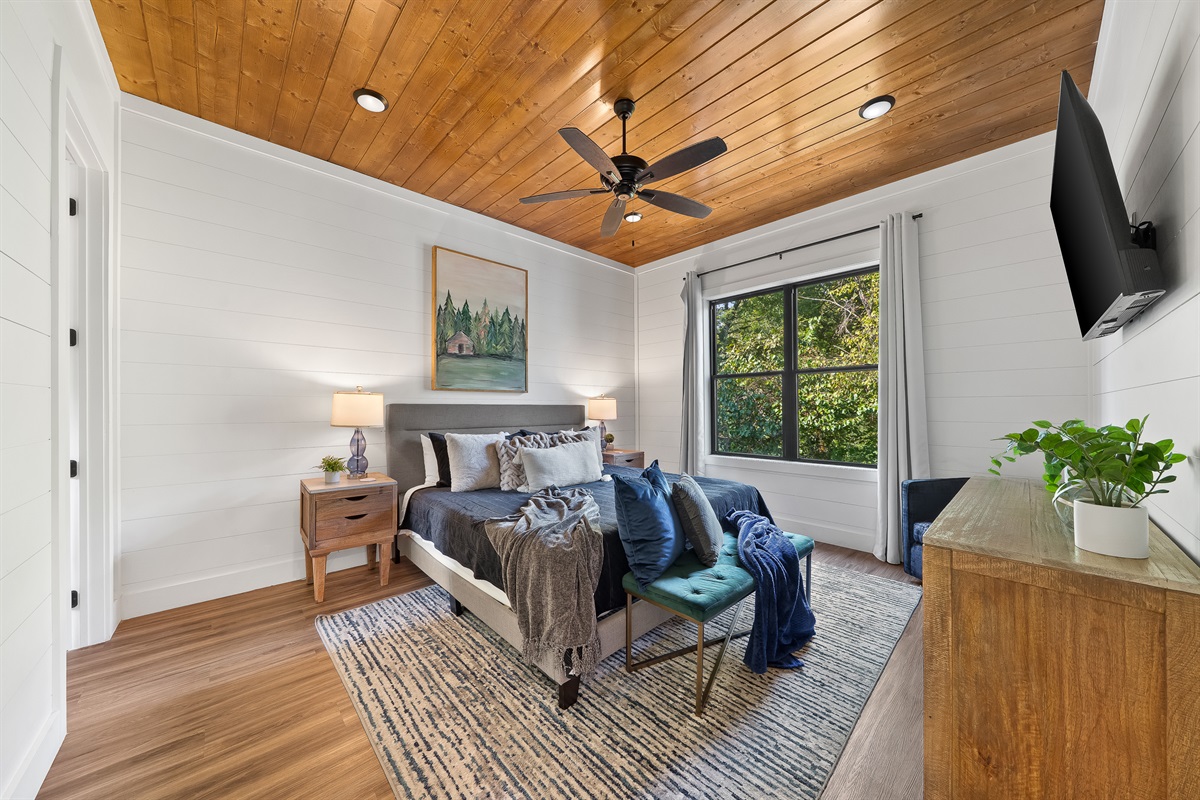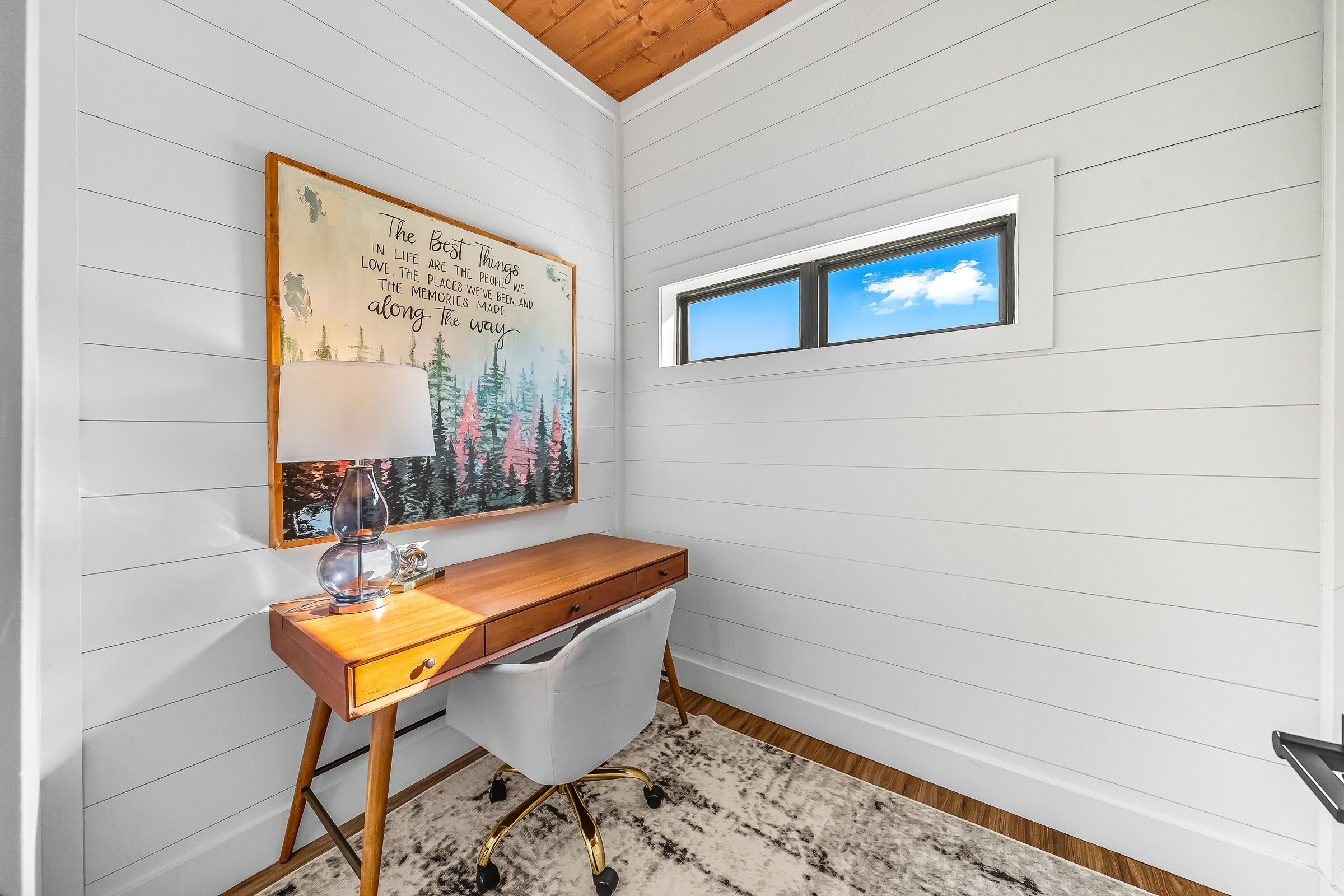 - Bedroom 2: 1 King Bed with attached office with door, Full Bathroom in Hallway