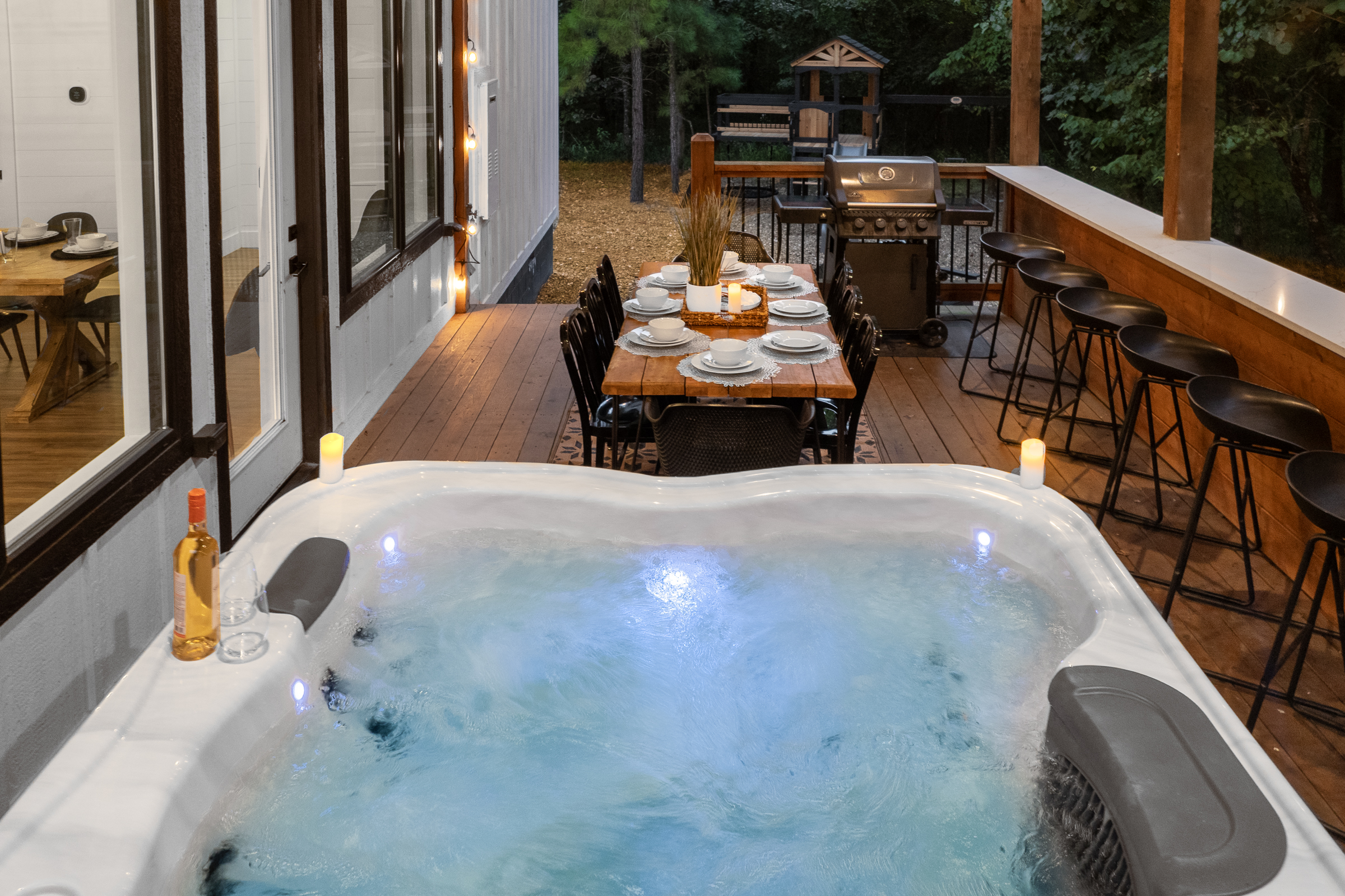 Gather your favorite people and experience luxury glamping at its finest at Glamping Creekside, managed by Elevated Vacays! Tucked along a private creek and surrounded by towering pines, Glamping Creekside Cabin was designed for gathering, unwinding, and making memories with endless entertainment and multiple gathering spots. Whether it’s slow mornings with coffee on the balcony, fireside conversations that stretch into the night, or friendly competition in one of the many entertainment spaces, there's a perfect space for every mood!