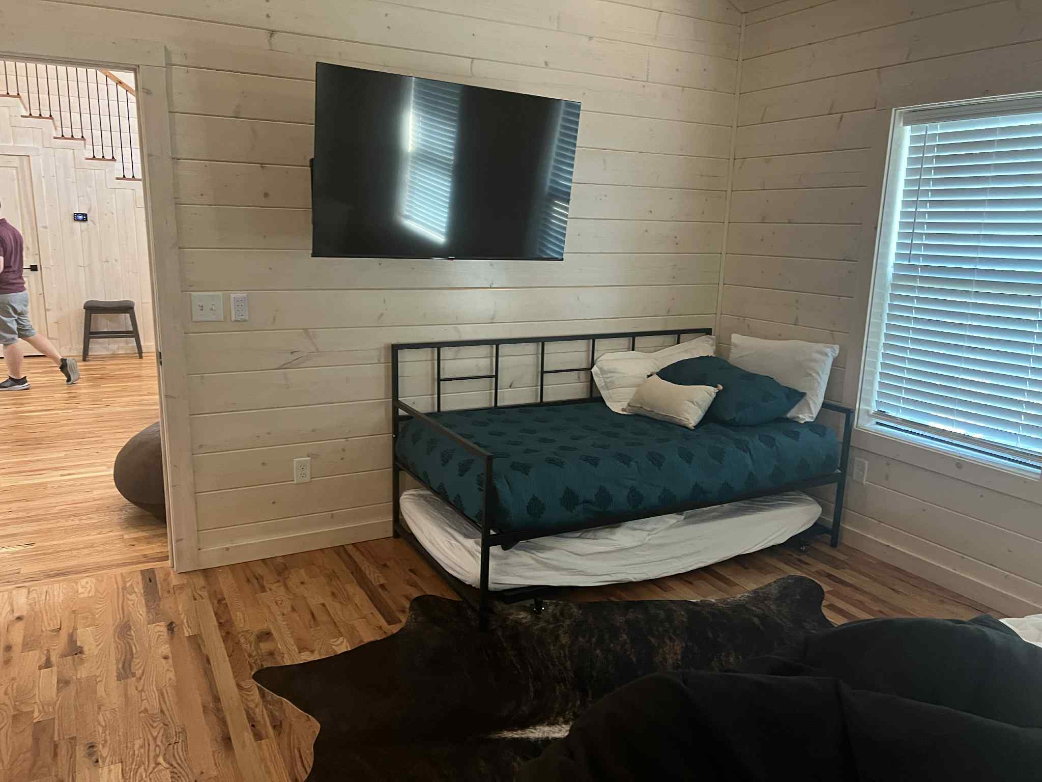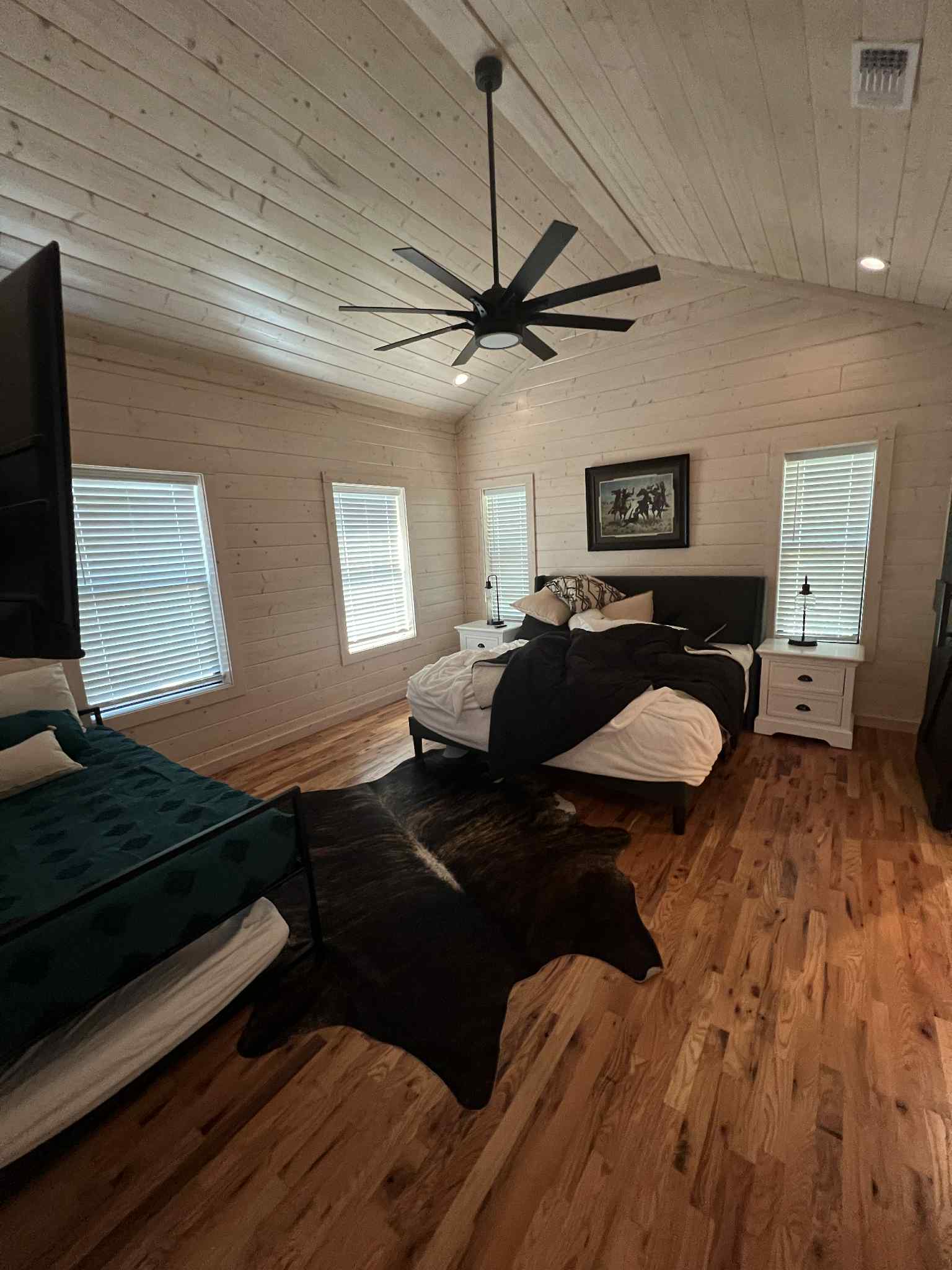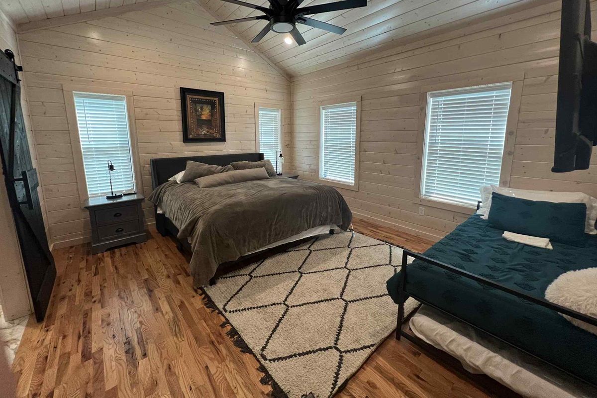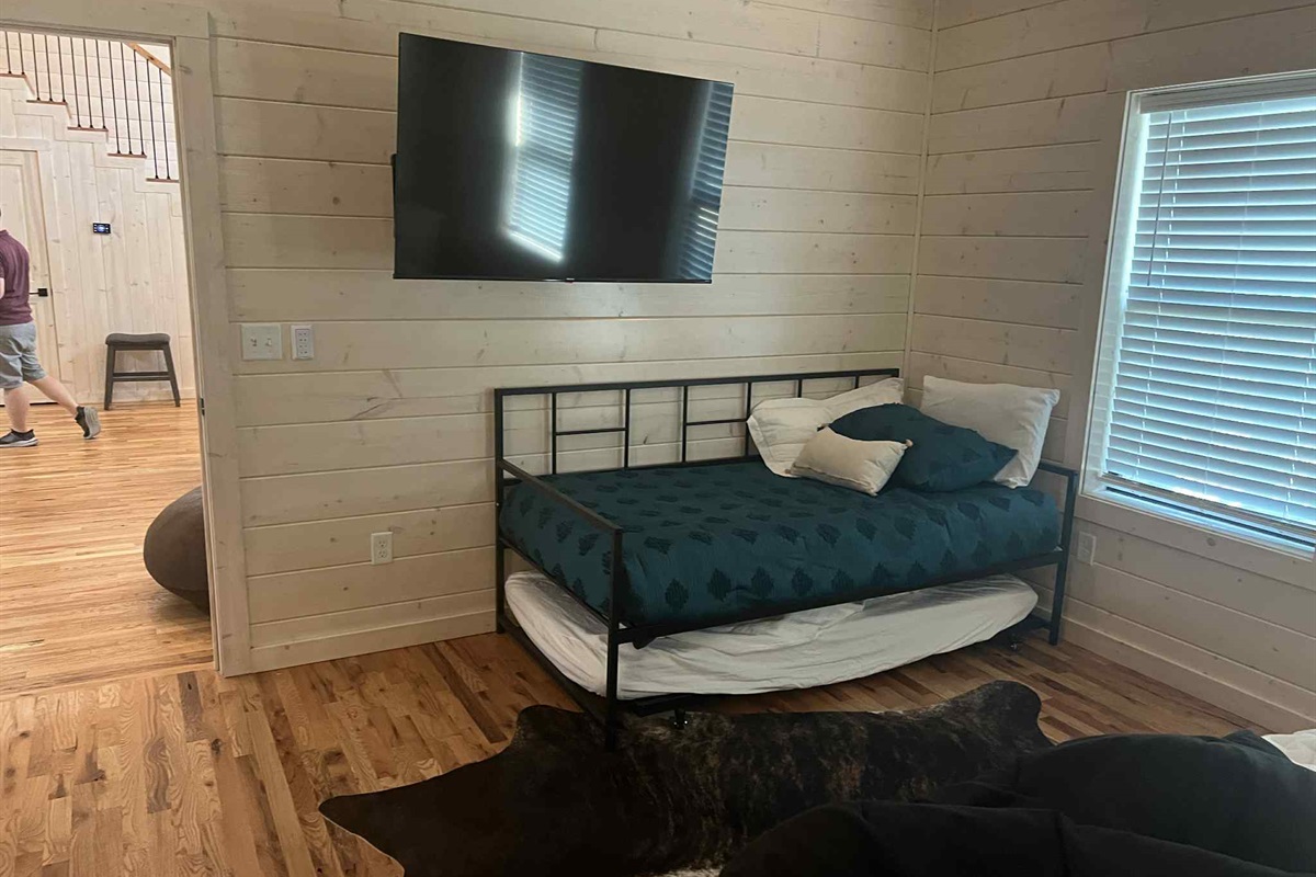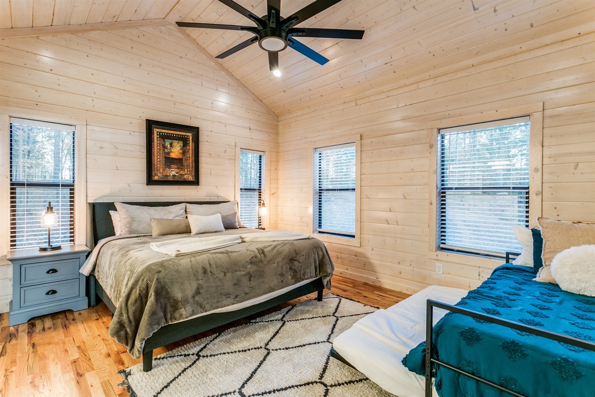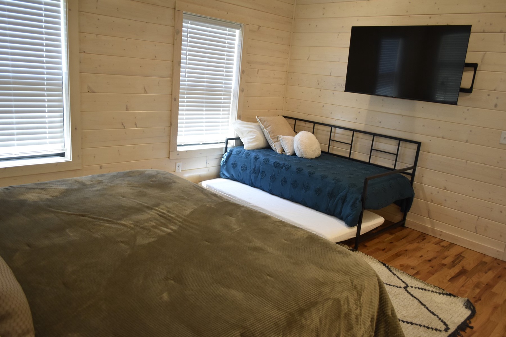 Bedroom 2: King + twin trundle, ensuite with soaking tub, spa shower, 2 vanities, 55” Hisense Roku TV