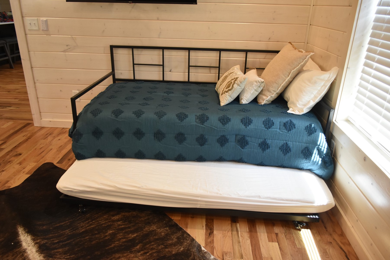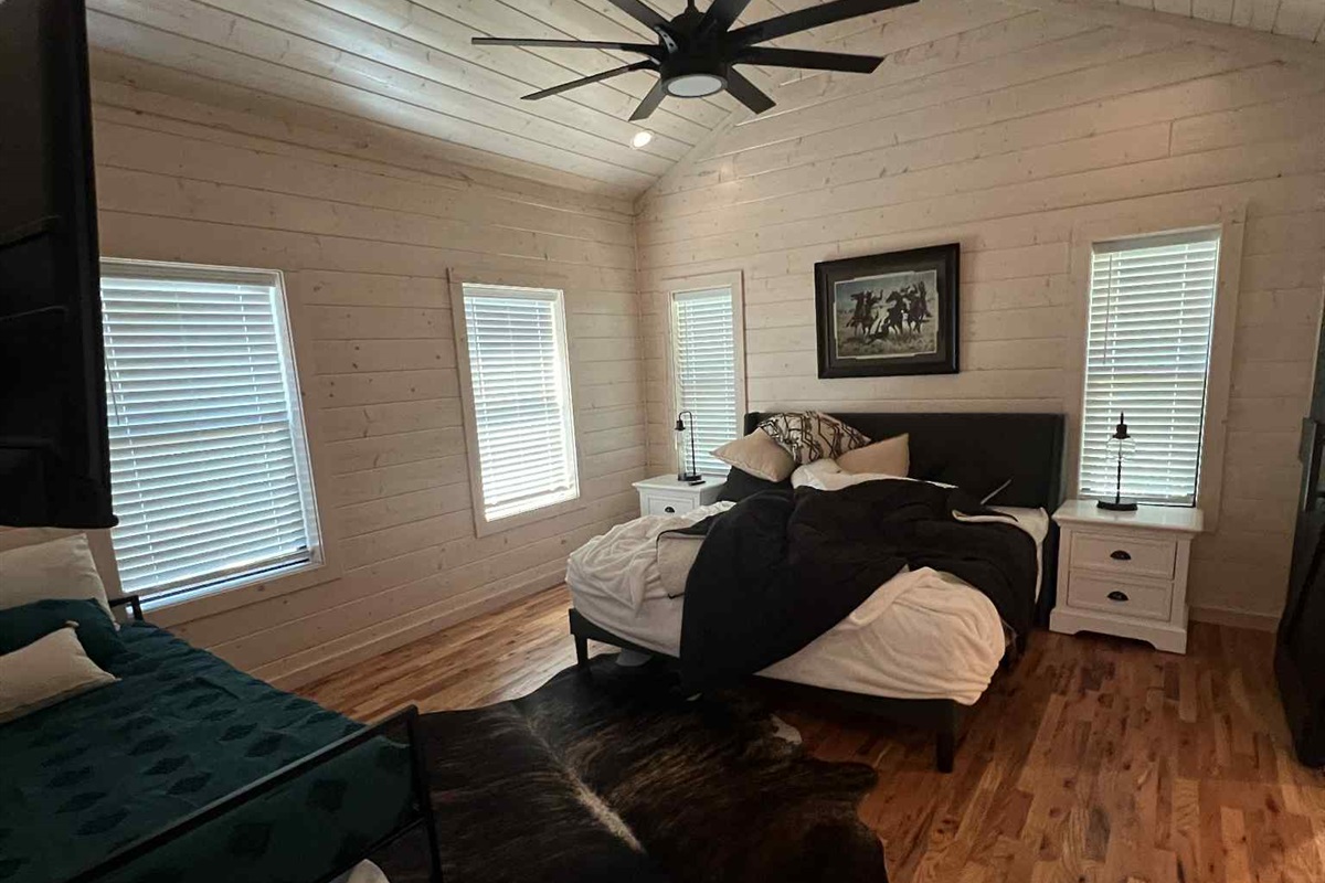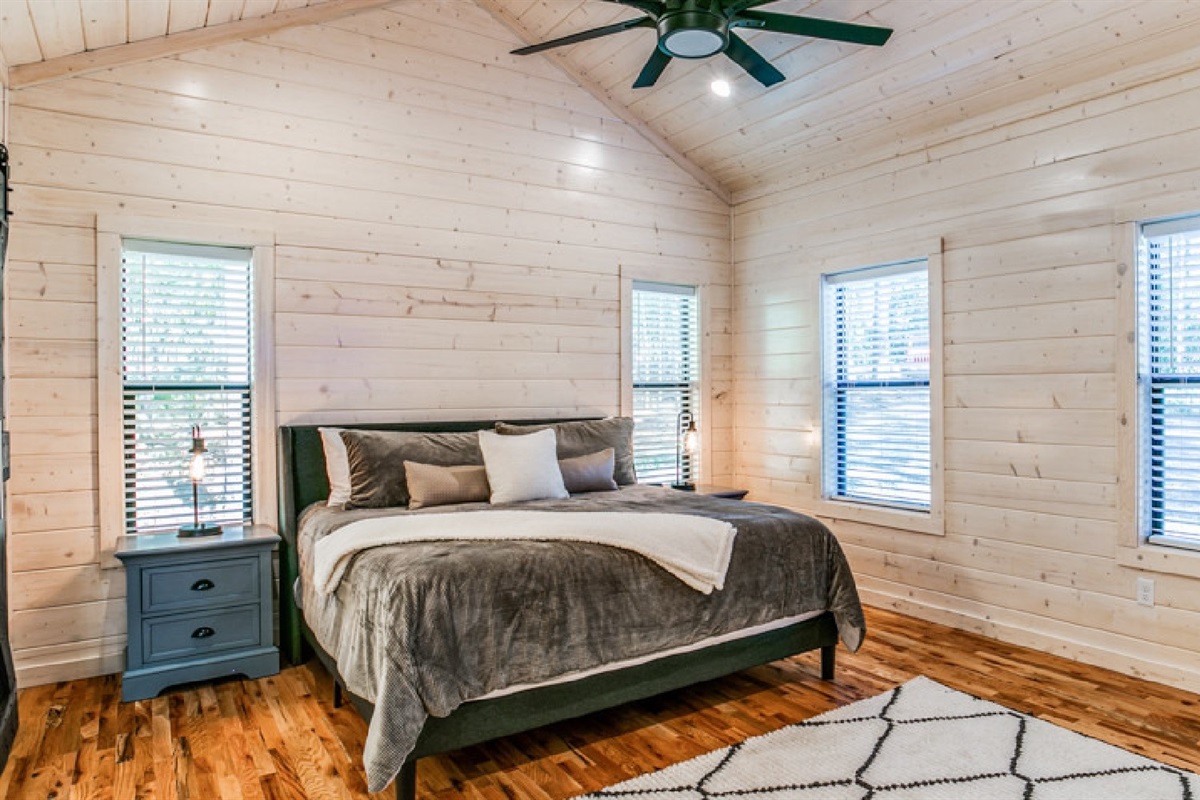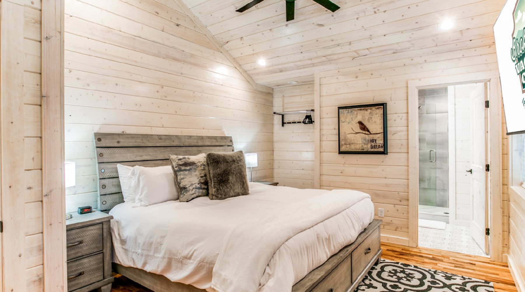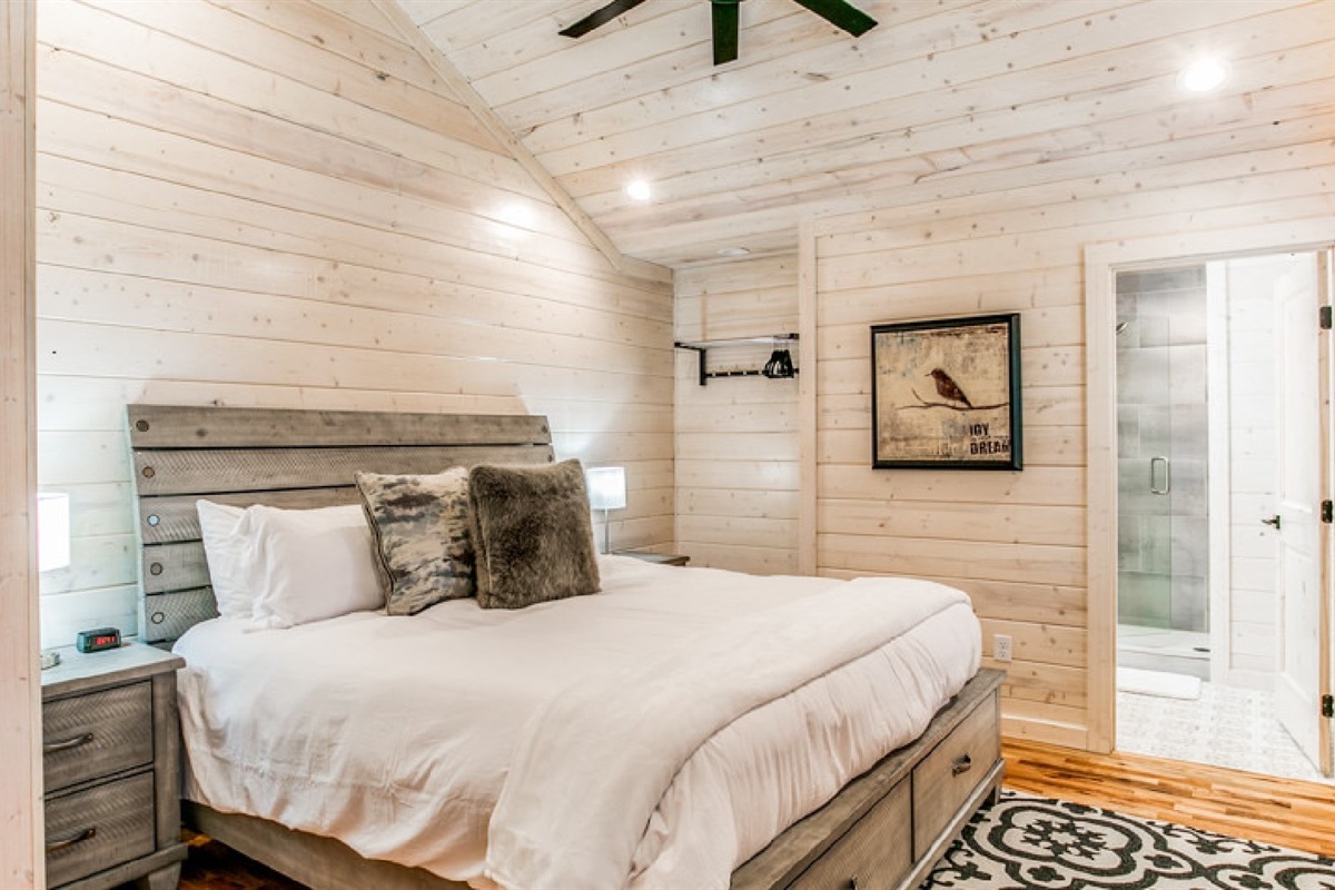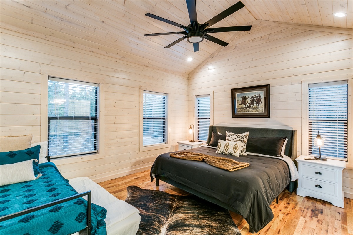 Bedroom 2: King + twin trundle, ensuite with soaking tub, spa shower, 2 vanities, 55” Hisense Roku TV