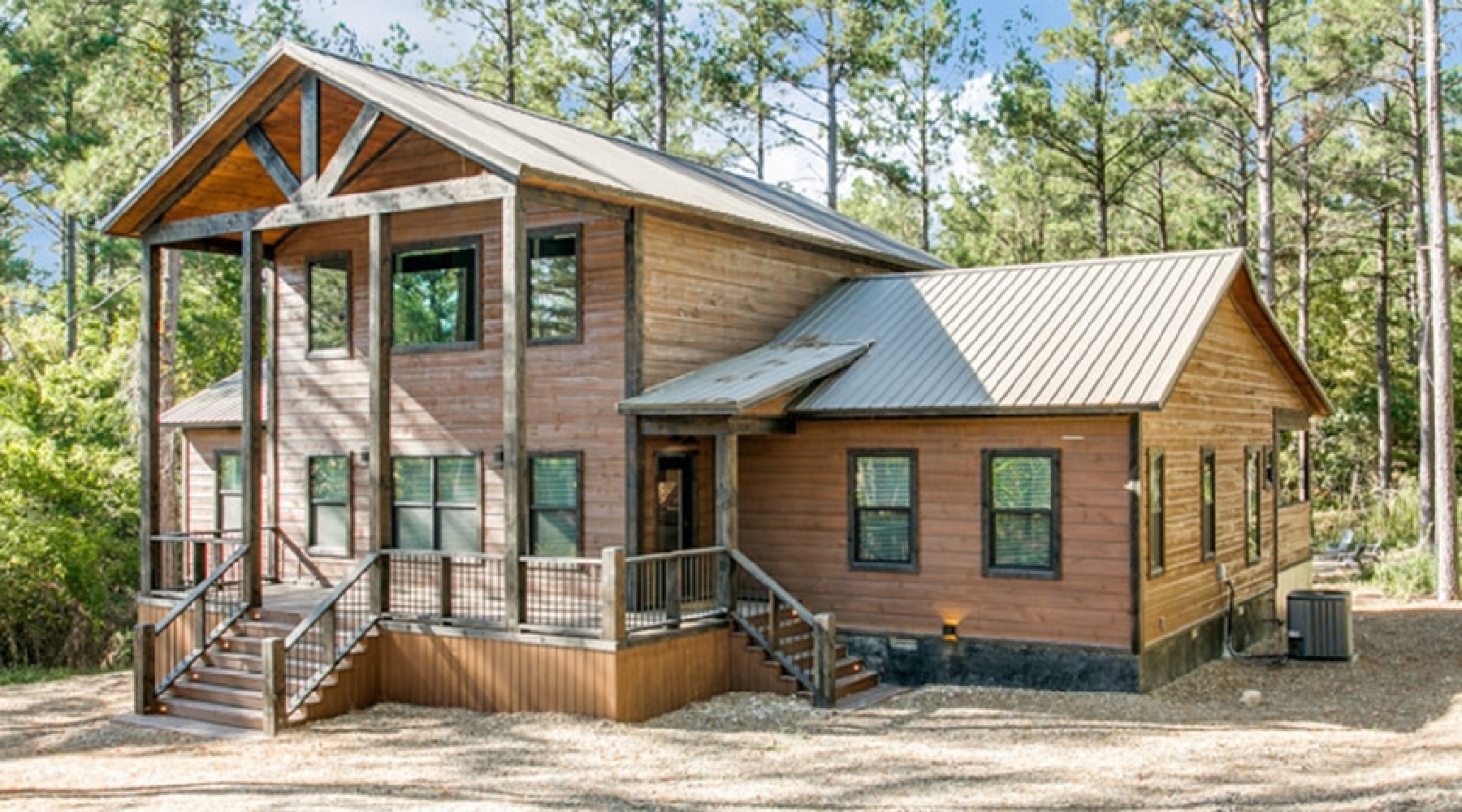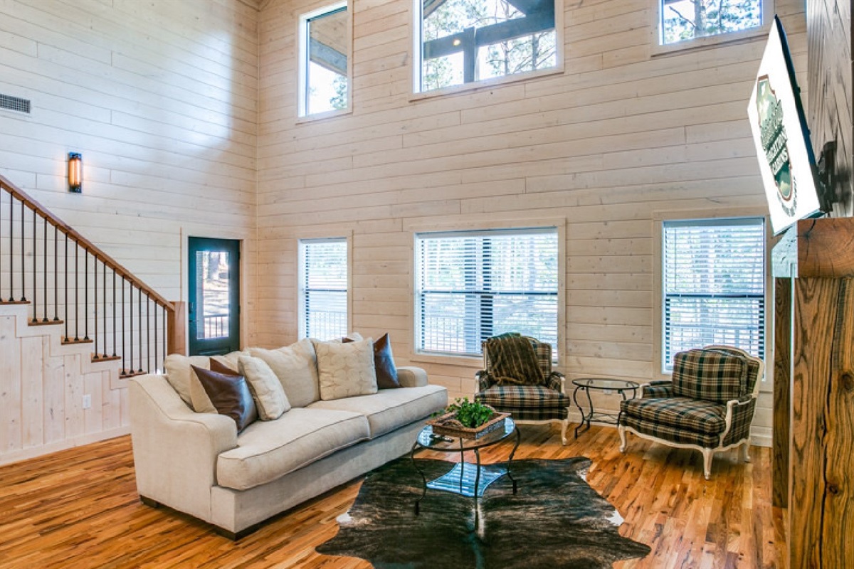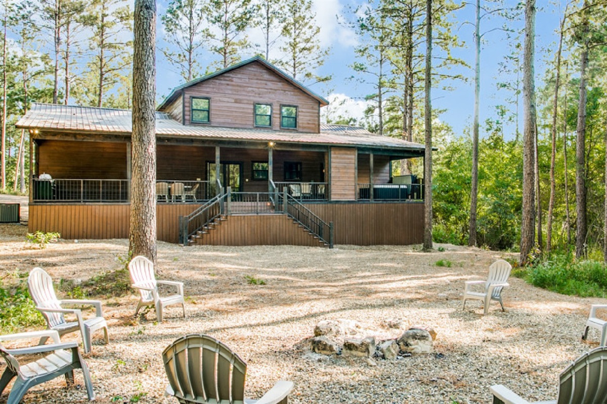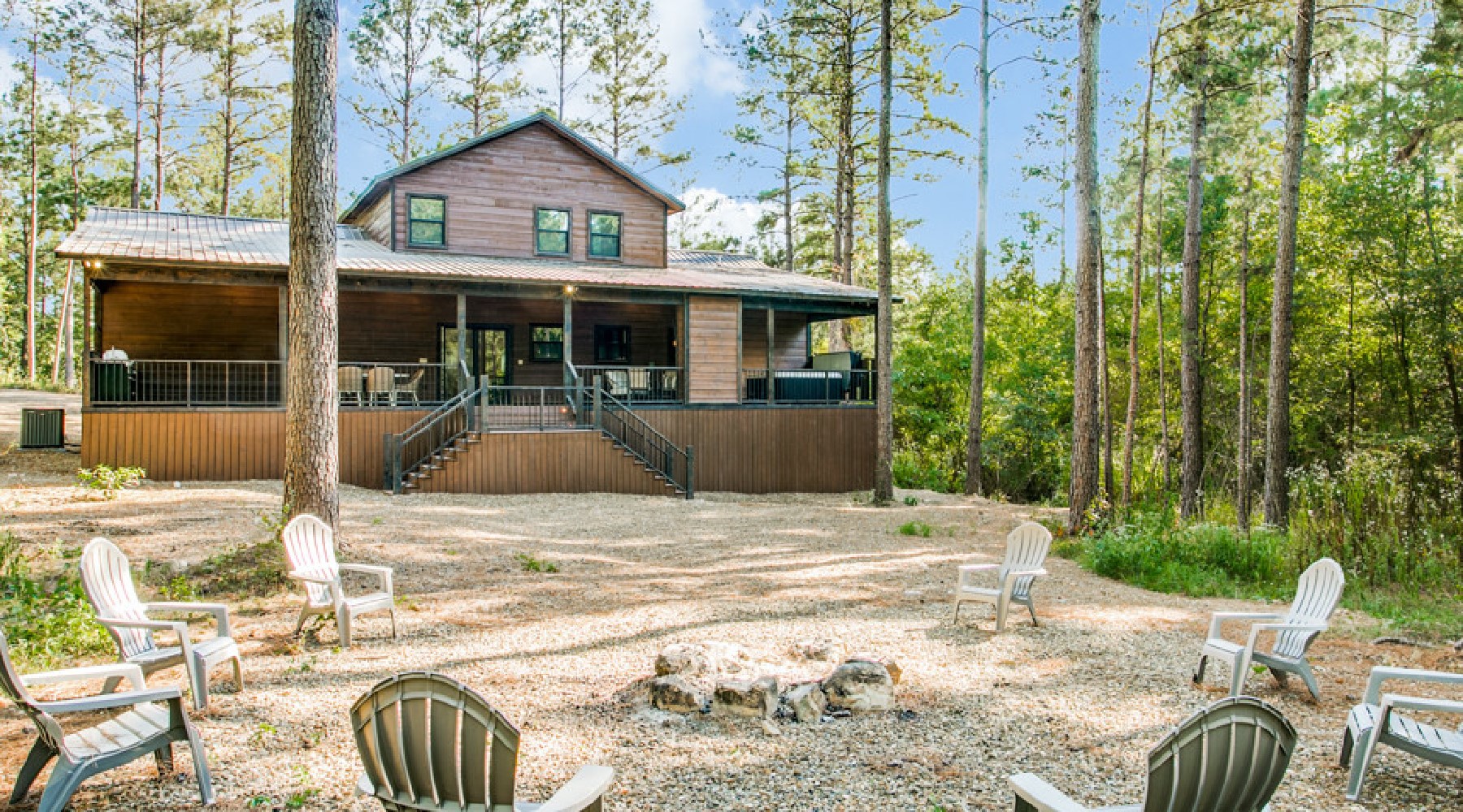 3 Bedrooms • 4 Bathrooms (3 full, 1 half) 4 Baths (3 full, 1 half) • Sleeps 1-14Pinewood Lodge is a rare find: a spacious, multi-family, pet-friendly cabin that offers complete privacy with no visible neighbors, yet is perfectly suited for fun-filled gatherings with family and friends. Nestled in a wooded setting on Tumbktu Lane, just 10 miles north of Hochatown, this cabin provides easy access to Broken Bow Lake, Beavers Bend State Park, and local attractions.
