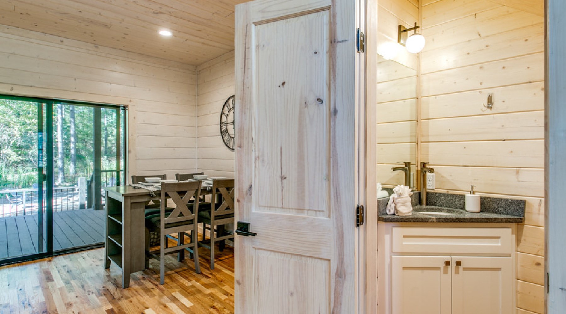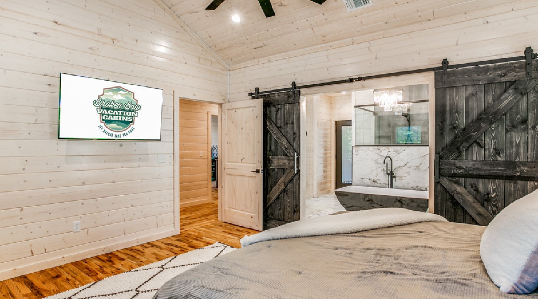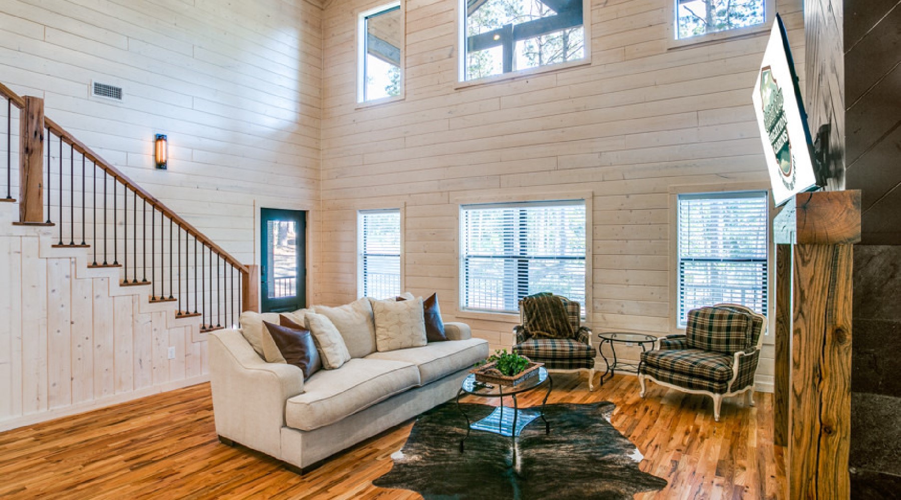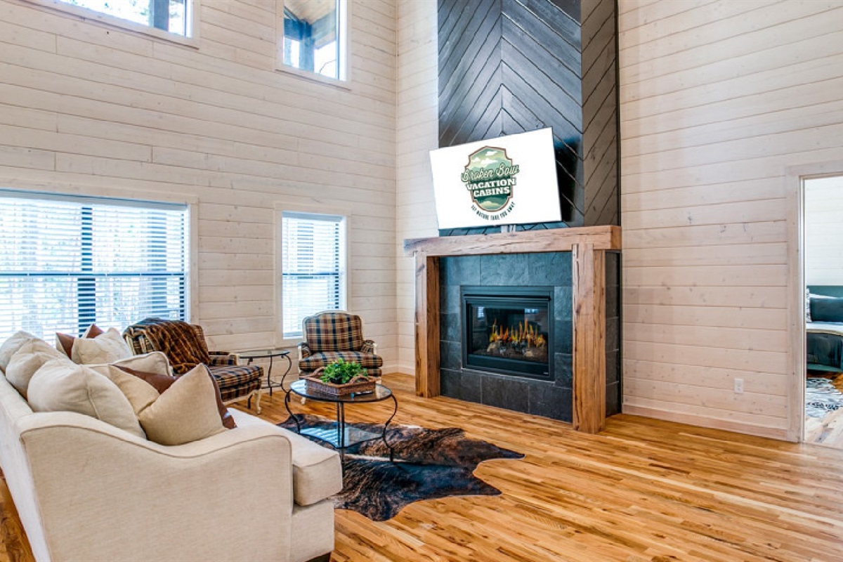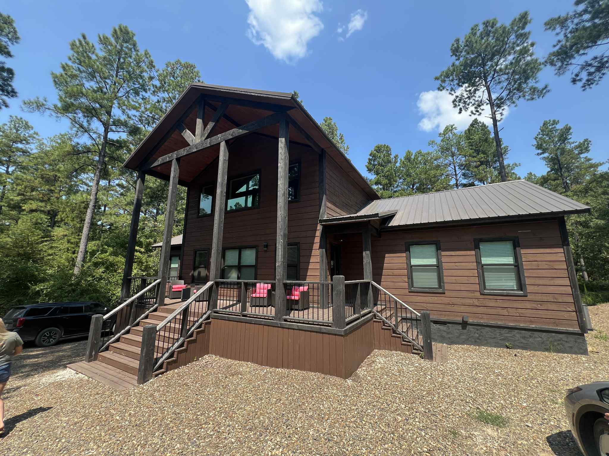 3 Bedrooms • 4 Bathrooms (3 full, 1 half) 4 Baths (3 full, 1 half) • Sleeps 1-14Pinewood Lodge is a rare find: a spacious, multi-family, pet-friendly cabin that offers complete privacy with no visible neighbors, yet is perfectly suited for fun-filled gatherings with family and friends. Nestled in a wooded setting on Tumbktu Lane, just 10 miles north of Hochatown, this cabin provides easy access to Broken Bow Lake, Beavers Bend State Park, and local attractions.
