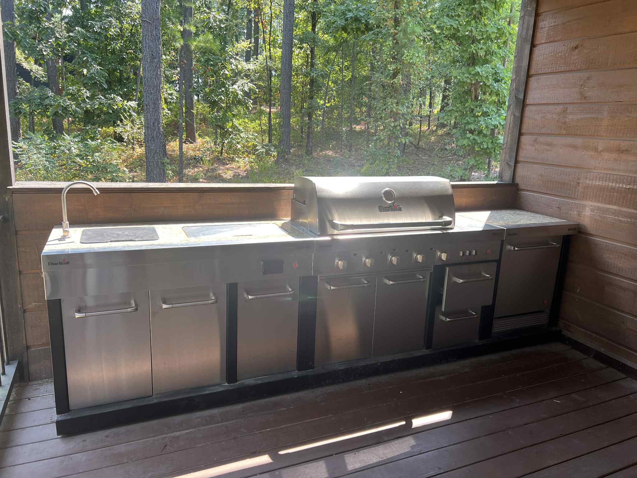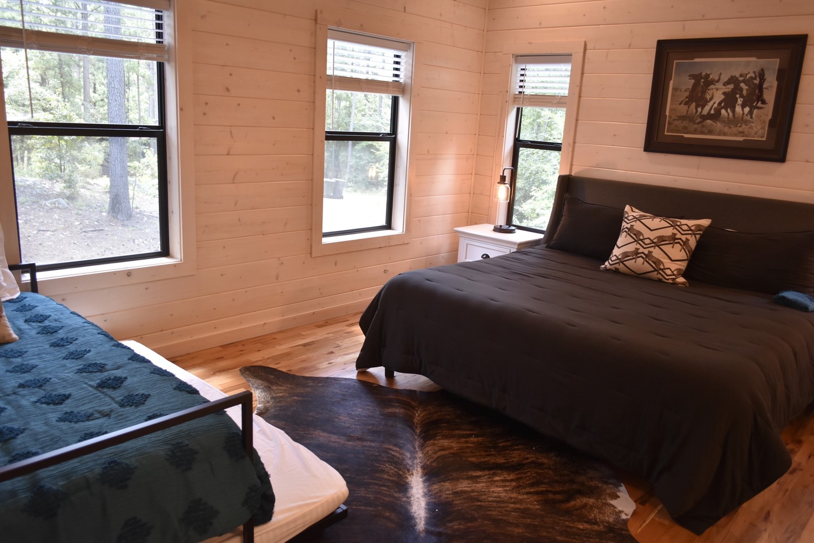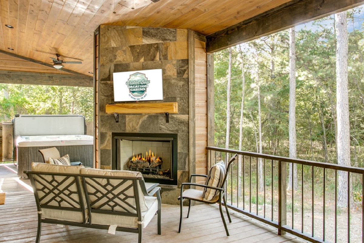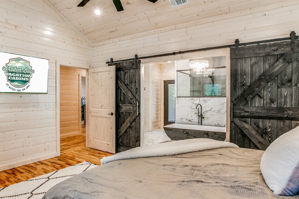 3 Bedrooms • 4 Bathrooms (3 full, 1 half) 4 Baths (3 full, 1 half) • Sleeps 1-14Pinewood Lodge is a rare find: a spacious, multi-family, pet-friendly cabin that offers complete privacy with no visible neighbors, yet is perfectly suited for fun-filled gatherings with family and friends. Nestled in a wooded setting on Tumbktu Lane, just 10 miles north of Hochatown, this cabin provides easy access to Broken Bow Lake, Beavers Bend State Park, and local attractions.