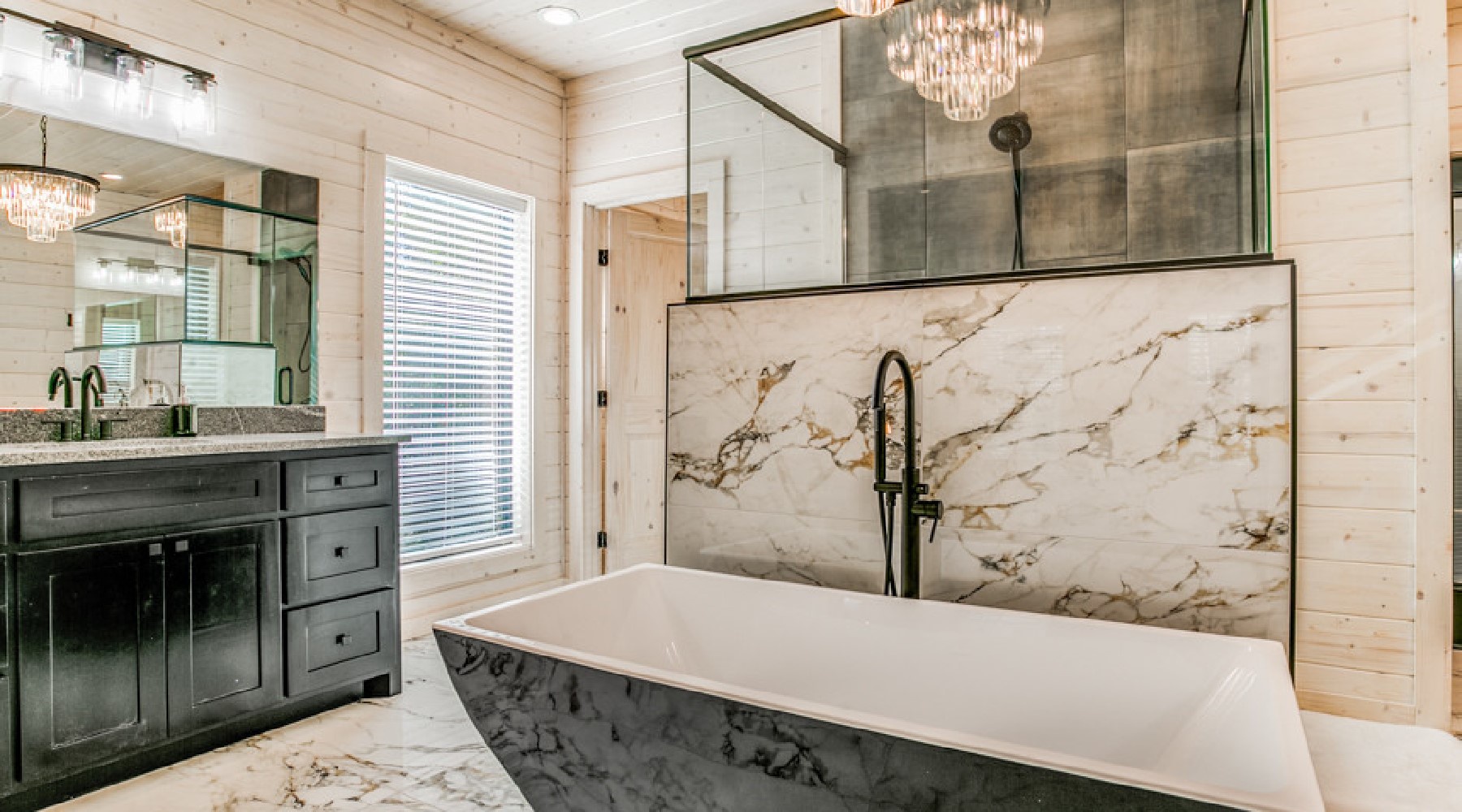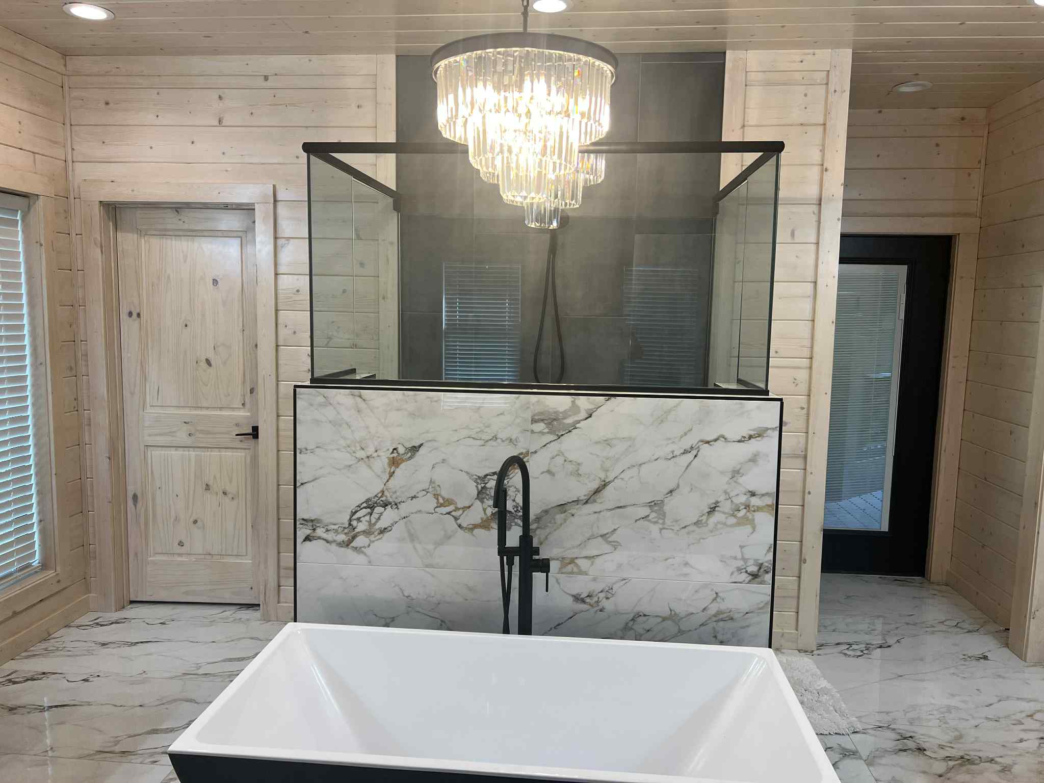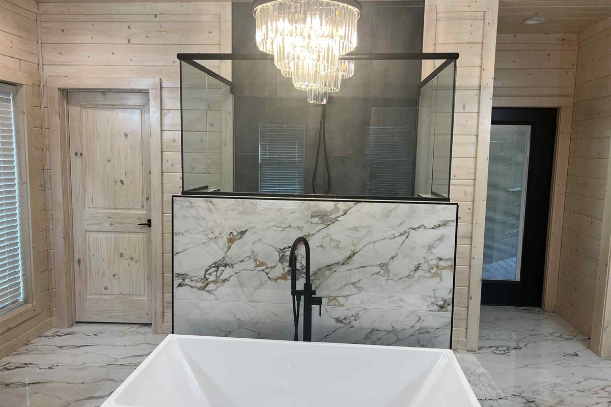 Bedroom 1: King + twin trundle, ensuite with soaking tub, spa shower, 2 vanities, 55” Hisense Roku TV