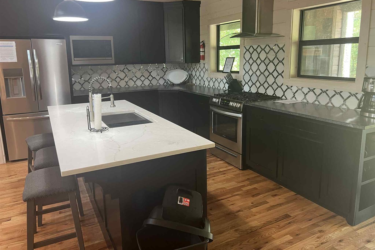 Fully equipped with refrigerator, stove, oven, microwave, and dishwasher