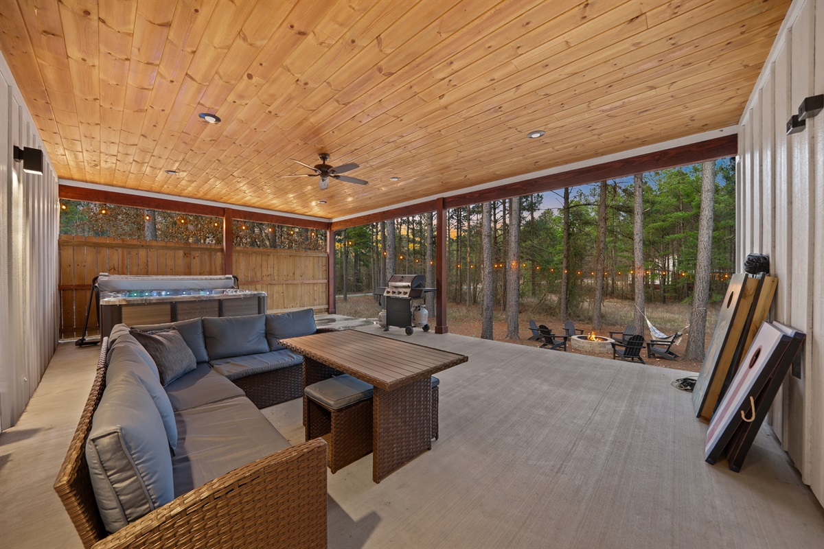 Indulge in a luxurious soak in the hot tub on the covered patio.