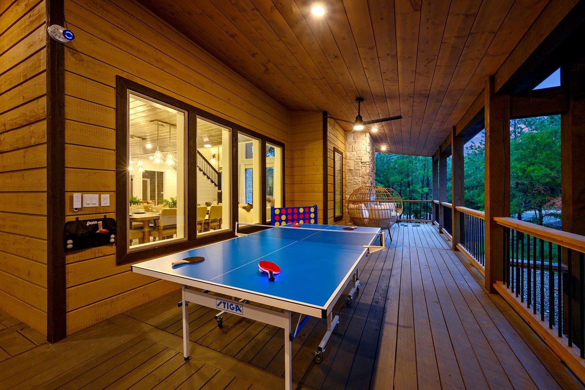 Find a whole world of fun and relaxation on the wraparound covered deck, where you can find your bliss in the 8+ person, 9-ft, extra-large hot tub with blissful lounger seats (you won't want to leave), plus nearby lounge seats to stretch out on with your favorite person out of the hot tub! Play cornhole and Giant Connect 4 – plus enjoy using the ping-pong table and Brunswick pool table.